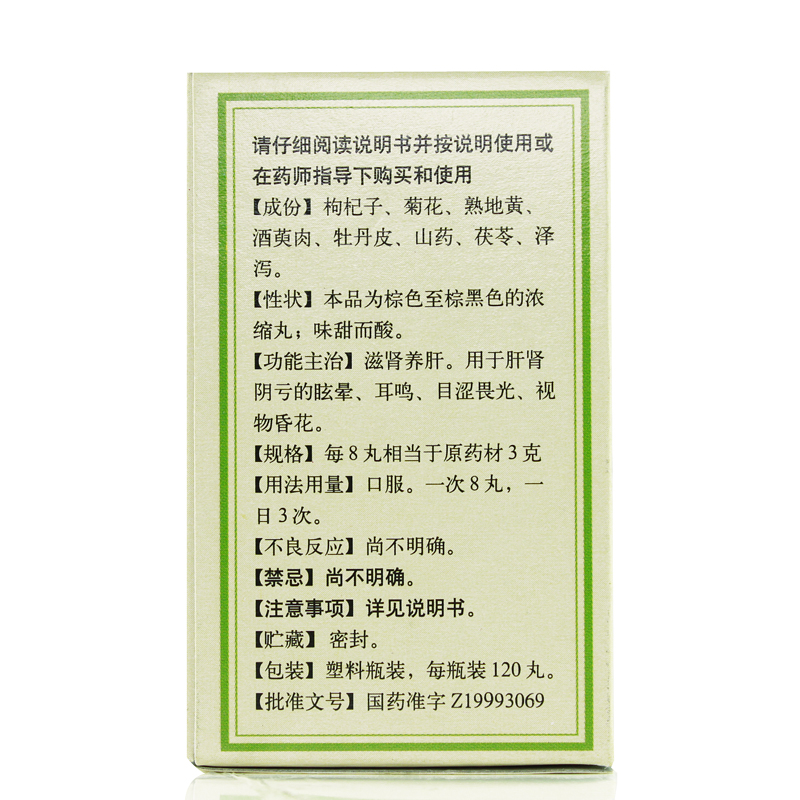 枸杞子、キクの花、熟地黄、サンシュユ(制)、牡丹皮、山芋、茯苓、サジオモダカ。
